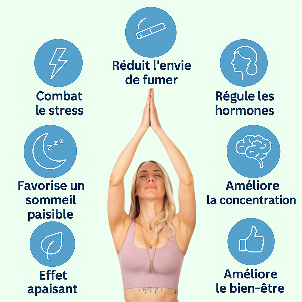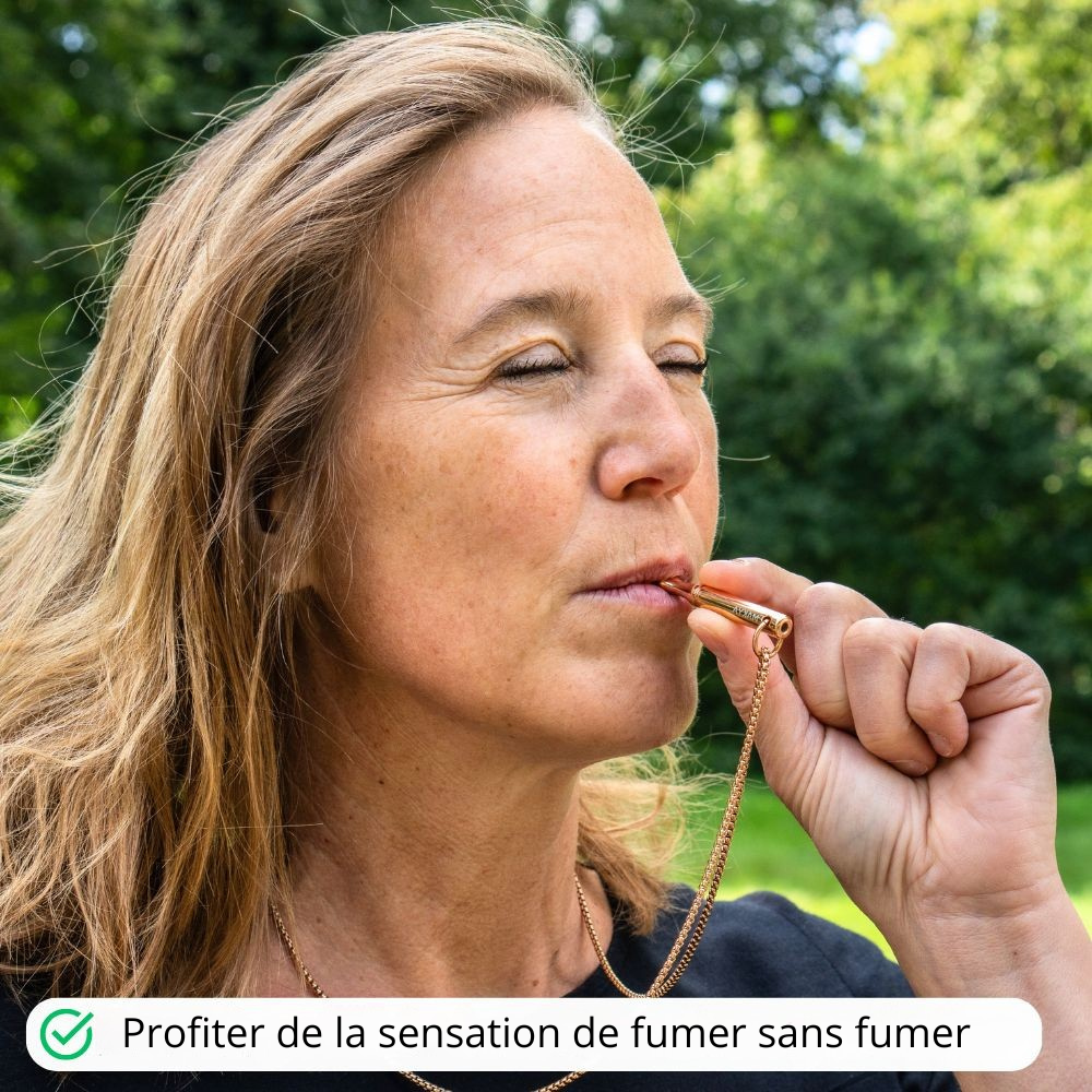 À chaque expiration dans l’appareil, une résistance naturelle ralentit le souffle. Ce mécanisme active le nerf vague, ce qui apaise immédiatement l’esprit et réduit les envies de fumer.